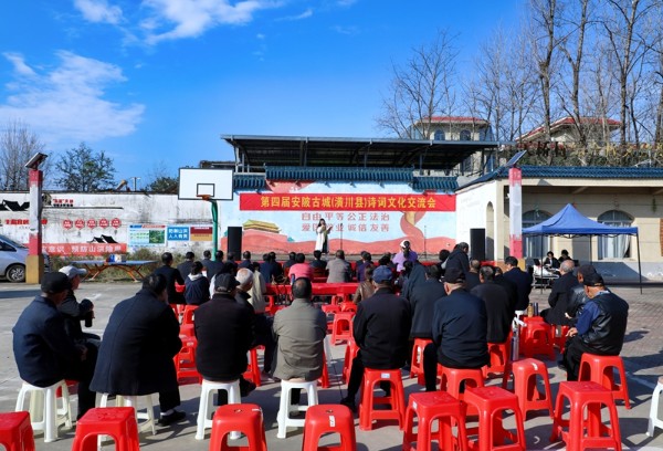 11月15日上午,由天桥木业主办、天桥村村民委员会协办的第四届安陂古城(潢川县)诗词文化交流会在天桥村文化广场举行。潢川县政协、县委党史和地方史志研究室、县老年诗词研究会,光山县、商城县作协代表,双柳树镇党政班子成员及天桥村老人代表等百余人参加,共襄诗词盛会,同品文化馨香。活动由县作协主席冯玥瑛主持。