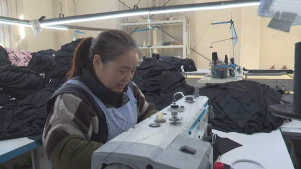 郸城县胡集乡贾集村帮扶车间主任姜素梅说:“我们厂建在村里最大特点是就业灵活,计件工资,时间自由。目前,我们60余名工作人员正在加班加点赶制一批6万件的外贸订单。”
