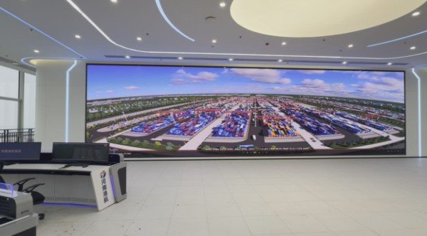 周口港小集作业区一期信息化项目总工闫初说:“现在10楼操控台已经安装完毕,LED大屏已完成安装与调试,操作台TOS生产管理系统都已经部署完成,控制中心的硬件支撑体系与信号传输网络已搭建就绪,具备开展后续业务对接与指挥调度的基础条件。”