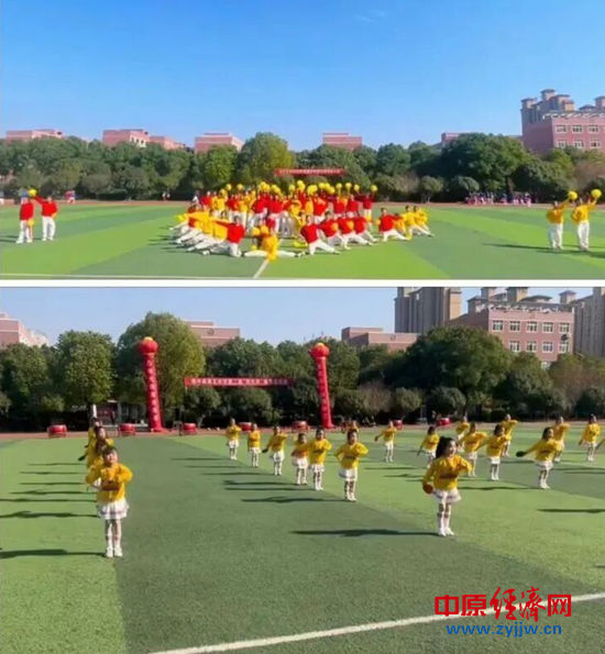 青春的热力在绿茵场上全然绽放!花球方阵舒展身姿,红黄色彩辉映晴空;小舞者跃动如光,将童真灵动的音符洒满赛场;彩绸方阵扬绸起舞,缤纷长绸如彩虹当空,将全场的热烈织成一幅流动的青春画卷。