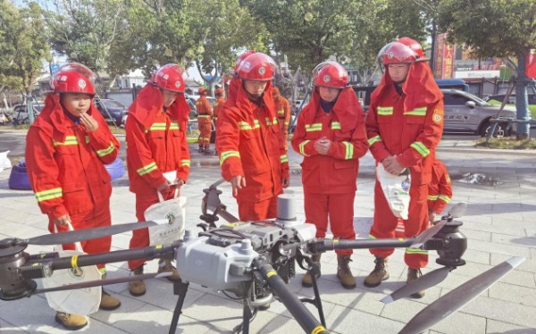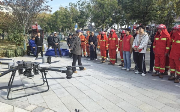 南阳消防救援机动大队模拟山林火情,开展“以水灭火”专项演练。演练中,消防队员利用高压水泵快速铺设水带,快速灭火,灭火效率提升5倍,人力消耗减少60%。消防员现场演示“高压水枪+风力灭火机”协同作战,成功压制模拟火头,展现“以水灭火”技术的高效性与安全性。无人机成为活动焦点,南阳铁航低空科技发展有限公司现场展示各类无人机,并讲解其在森林防灭火中的“侦察-打击-保障”全链条应用。