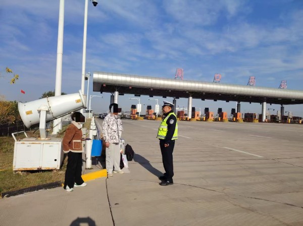 11月22日上午10时许,安罗高速五大队民警准备巡逻,在周口西站发现两人拎着大包小包行李,在收费站站口聊天,情况十分危险。民警上前询问了解情况。