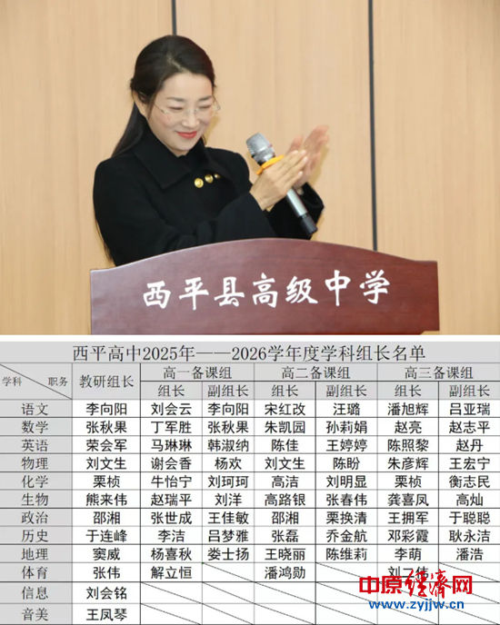 中原经济网驻马店讯(记者 杨晓 全媒体记者 冯占华 通讯员 肖丽娟 刘家明)11月24日下午,西平高中在图书馆三楼会议室隆重举行2025至2026学年度学科组长聘任仪式暨工作培训会。校领导班子,各年级主任,各学科新聘教研组长、备课组长及副组长齐聚一堂,共同见证这一重要时刻。