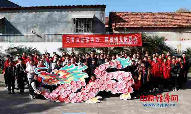 课堂之外,驻马店第十小学与胡庙乡臧集小学的各40名学生展开深度联动。两校学生以剪纸窗花为创意核心,将剪刻好的精致纹样细心贴于纸盘之上,让普通纸盘蜕变为独特“龙鳞”,随后共同协作拼出形态完整、细节丰富的中国龙。这场跨校美育实践,不仅让两校学生在动手创作中深化了对剪纸工艺与龙文化的理解,更搭建起校际文化交流的桥梁,实现了美育资源的共享互促,让传统文化在协作中焕发新生,为两校美育教育注入了鲜活力量。