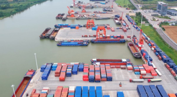 周口临港开发区党工委副书记李锋说:“建成以周口中心港为龙头、小集港为核心,西华、项城、沈丘等多个作业区协同联动的‘一港十区一核心’的港口体系,累计建成规模性港口8个、泊位97个,形成长江以北规模最大、靠泊能力最强的内河大港集群。全市货物吞吐量从2020年的1860万吨跃升至2024年的5205万吨,五年增长2.8倍,占全省港口货物吞吐总量的85%以上。累计开通集装箱航线43条,其中国内航线29条,覆盖长三角、珠三角等经济圈;国际航线14条,通达美国、巴西、泰国等14个国家和地区,真正实现了‘箱通世界、货运全球’。 ”