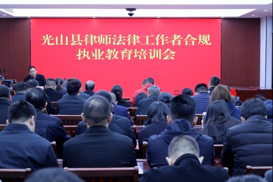 为全面提升光山县律师及基层法律服务工作者依法执业、诚信执业、规范执业水平,推动法律服务行业高质量发展,近日,光山县司法局特邀信阳市律师协会副会长孙中华、常务理事兼纪律工作委员会主任左海强来该县开展合规执业专题培训。光山县司法局分管领导李继兵主持会议,全县执业律师、实习律师及基层法律服务工作者参加培训。