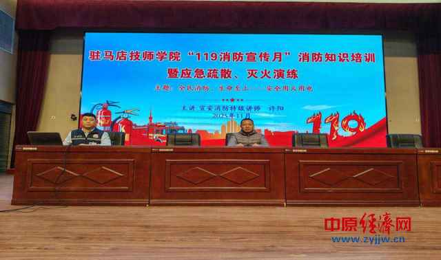 中原经济网驻马店讯 (记者 杨晓 全媒体记者 晨曦 通讯员 余婷婷)为深入贯彻落实消防安全工作相关要求,切实提升全校教职工消防安全防护意识与应急处置能力,扎实筑牢校园安全防线,11月25日,驻马店技师学院在综合楼报告厅举办以“全民消防,生命至上——安全用火用电”为主题的“119”消防安全宣传演练活动。学院党委委员、副院长石剑,党委委员、纪委书记姚恩广,学院领导陈新记及全体教职工参加活动。