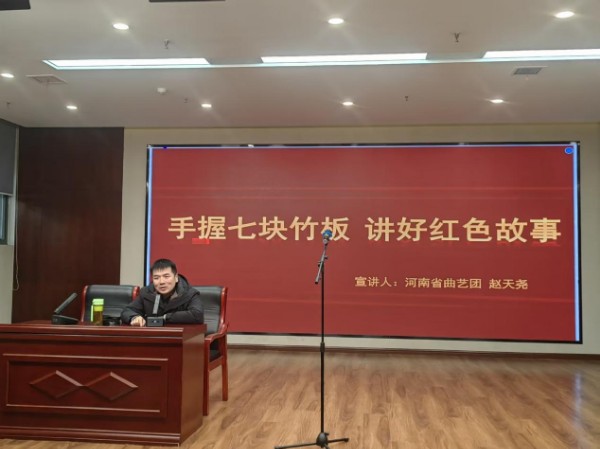 为厚植红色基因、传承中华优秀传统文化,11月26日,南阳市新野县新时代文明实践中心联合县文联,特邀河南省“新时代宣讲师”赵天尧开展“手握七块竹板 讲好红色故事”主题宣讲活动。活动以“宣讲+表演”的创新形式,将传统曲艺与红色文化深度融合,为现场观众带来沉浸式文化体验,让红色精神在清脆的竹板声中浸润人心。