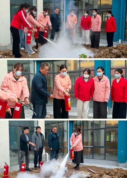 光有理论不足以应对突发火情,只有熟练掌握实操技能,才能更好地应对紧急情况。老师们齐聚演练场地,开展灭火器动手实操。“一提、二拔、三握、四压……”伴随着清晰的讲解,教师们轮番上阵,亲身体验。面对模拟的火源,她们沉着冷静,按照操作要领,手持灭火器,精准地将一股股白色的粉末喷向火苗根部。空气中弥漫的,不仅是灭火器的干粉,更是责任与担当的气息。