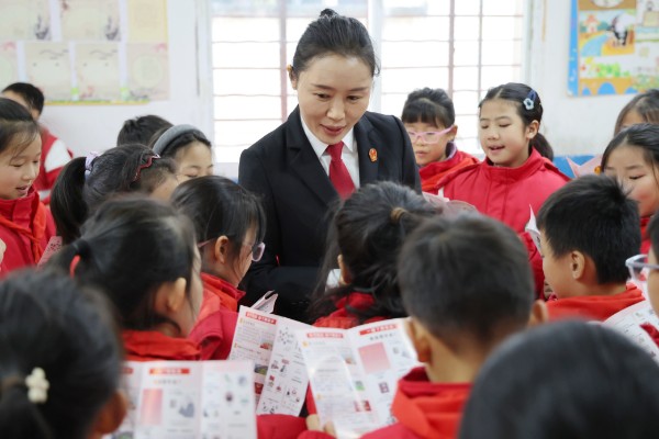 “你们知道我们国家的根本大法是什么吗?”“法官老师,我知道!是宪法!”课堂上,面对法官赵钦抛出的问题,同学们纷纷举起小手,一双双明亮的眼睛里满是对求知的渴望。