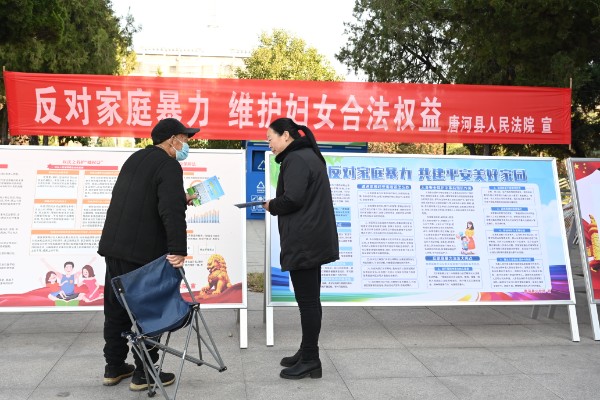 11月29日上午,唐河县人民法院联合县妇联、县公安局、县检察院、县司法局等多部门,在唐河县文峰广场开展消除数字暴力普法集市宣传活动。