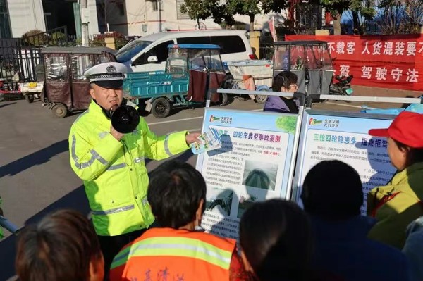 活动现场,交警支队宣传科和直属一大队的宣传民辅警通过摆放宣传展板、发放宣传资料、悬挂张贴条幅海报、现场解析典型案例、有奖互动问答等方式,向群众普及交通安全出行常识。重点围绕冬季天气特点和农村群众出行规律,向群众讲解横过道路应注意的事项,以及违规乘坐三轮车的危害、骑乘电动自行车不佩戴安全头盔、闯红灯等违法行为的危害,引导村民自觉遵守交通法规,养成文明出行习惯。