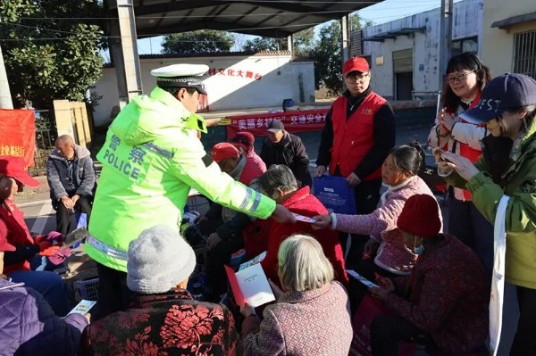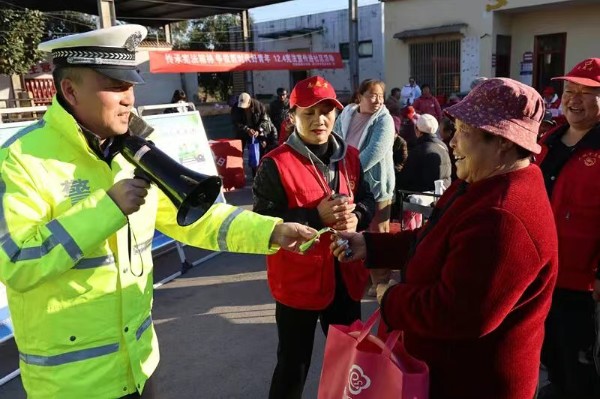为深入践行“奉献、友爱、互助、进步”的志愿服务精神,切实提升农村居民的交通安全意识,12月3日下午,周口市公安局交警支队联合共青团周口市委、周口市妇女联合会等单位,走进川汇区城南办事处小王营行政村,开展以“践行志愿精神,共倡文明交通”为主题的交通安全宣讲志愿服务活动,将安全知识和暖心服务送到群众家门口。