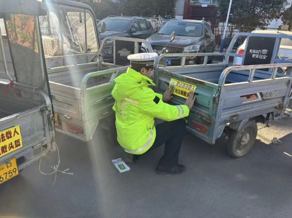 同时,交警支队宣传民辅警还为缺少反光标识的三轮车辆粘贴了交通安全宣传反光贴,向村民强调通过穿着颜色鲜亮衣物、车辆上粘贴反光物质等方式,保证夜间出行时能“被看见”的重要性。