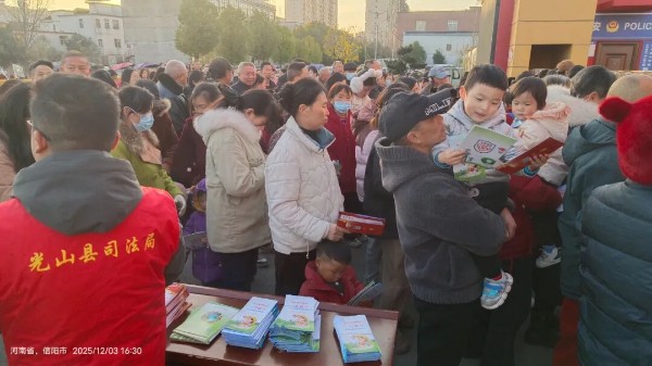 12月3日下午,光山县第二中心幼儿园迎来了一群特别的“老师”——光山县司法局法律援助中心、政治部和普法教育股的工作人员。带着缤纷的法治绘本、有趣的宣传手册、实用的法治日历、普法围裙,在园门处摆起“普法小摊”。