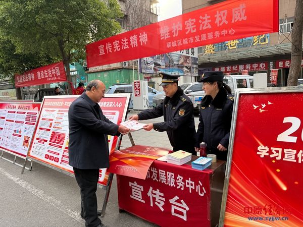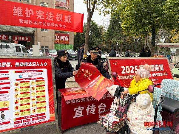 中原经济网驻马店讯 (记者 杨晓 全媒体记者 刘勇伟 通讯员 马杰)12月4日是第十二个国家宪法日。为全面贯彻落实党的二十大和二十届历次全会精神,深入学习宣传贯彻习近平法治思想和习近平总书记关于宪法的重要论述,按照上级工作部署和要求,驻马店驿城区城市发展服务中心围绕“学习宣传贯彻习近平法治思想,推动宪法深入人心”为主题,于12月4日起至12月10日,持续开展第八个“宪法宣传周”系列宣传服务活动。
