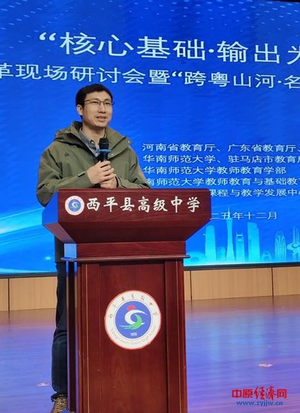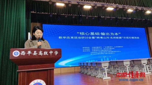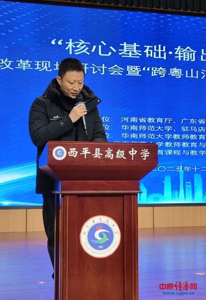 中原经济网驻马店讯(记者 杨晓 全媒体记者 冯占华通讯员 陈培琦 赵会敏 张秋果)仲冬时节,学思并进;名师荟萃,杏坛生辉。2025年12月2日下午,“核心基础·输出为本”教学改革现场研讨会暨“跨粤山河·名师联盟”示范引领活动在西平高中隆重启幕。本次活动旨在构建跨区域教研对话平台,推动高中数学教学向深处扎根、向高处生长,县教育局领导、西平高中副校长田冀峰等校领导班子成员与全县数学骨干教师齐聚一堂,共研教学新范式,共话育人新篇章。