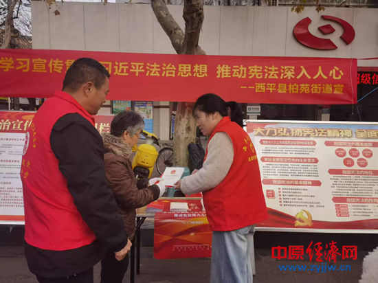 中原经济网驻马店讯(记者 杨晓 全媒体记者 冯占华 通讯员 吴晓阳)2025年12月4日是第十二个国家宪法日,西平县柏苑街道于12月4日在西平县柏城道中段开展集中宣传活动。