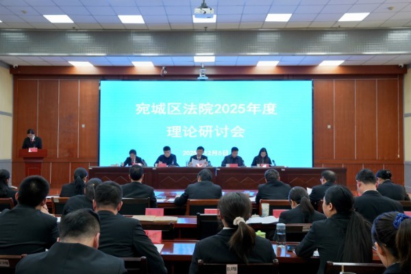 为系统总结年度调研工作成效,持续营造浓厚的调研工作氛围,12月5日,南阳市宛城区人民法院召开2025年度理论研讨会,南阳市中级人民法院研究室主任吴贺明及研究室相关同志应邀到会指导,宛城区人民法院党组书记、代理院长王立申出席会议并讲话,宛城区人民法院班子成员、各部门负责人、35周岁以下青年干警参会。