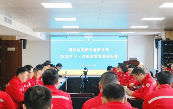 12月5日下午,周口市天然气有限公司在会议室召开十一月份经营管理分析会,亿星集团常务副总裁、周口天然气公司董事长赵广良,亿星集团副总裁、周口天然气公司总经理郭向前等参加会议,郭向前主持会议。