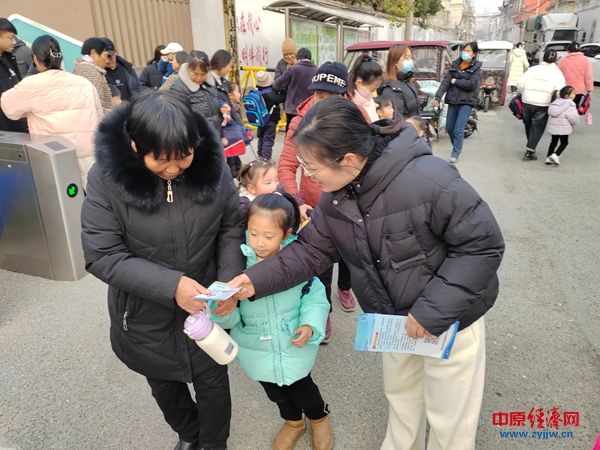 放学人流高峰时段,工作人员耐心为等候孩子的家长答疑解惑,传递宪法精神和应急普法理念,推动“一人学法、全家懂法”,构建校园、家庭、社会联动的法治宣传格局。