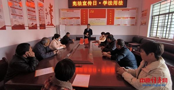 在宪法宣传中,该乡聘请的法律顾问赵志远、张和平分别前往杜庄村、何庄村、余庄村和杨桥村围绕什么是宪法、宪法的地位、作用、赋予公民的权利等重点内容与群众面对面重温宪法内容,明晰依宪治国、依宪执政、弘扬宪法精神的重要意义。以剖析真实案例的方式更直观地讲解与群众生活息息相关的土地承包、权益保护、继承、赡养等法律条款。并对群众关切的法律问题进行认真解答。同时充分利用村电子显示屏,滚动播放宪法宣传标语,让法治文化融入日常。