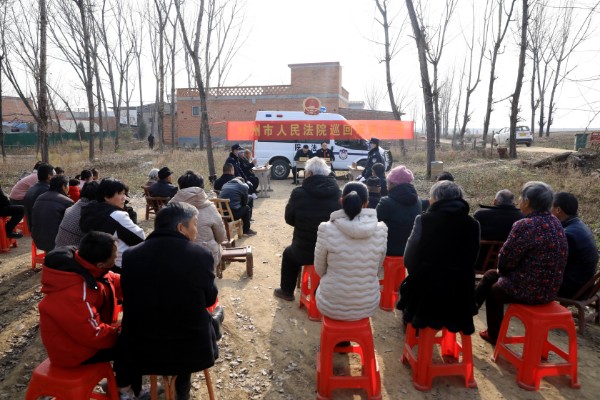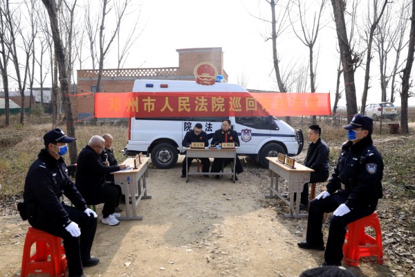 12月10日上午,在邓州市张村镇杨楼村的一处空地上,一场别开生面的巡回审判在此进行。邓州市人民法院将法庭“搬”到村民家门口,公开审理一起因枯树折断引发的财产损害赔偿纠纷。巡回法庭吸引了附近众多村民驻足旁听,南阳中院微直播团队对庭审进行了全程直播,多家新闻媒体也到场进行了跟踪报道。