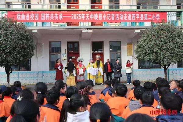 中原经济网驻马店讯(记者 杨晓 全媒体记者 冯占华 通讯员 王晓云)12月10日下午,西平县第二小学联合驻马店天中晚报社开展“戏曲进校园 国粹共传承”主题活动,特邀西平县豫剧团艺术家走进校园,为天中晚报小记者们带来一堂“可听、可看、可玩”的沉浸式戏曲体验课。婉转的豫剧唱腔与五彩戏服走进校园、走上操场,让孩子们在近距离感受戏曲魅力的同时,进一步弘扬中华优秀传统文化,在童真童趣中播下传承国粹的种子。