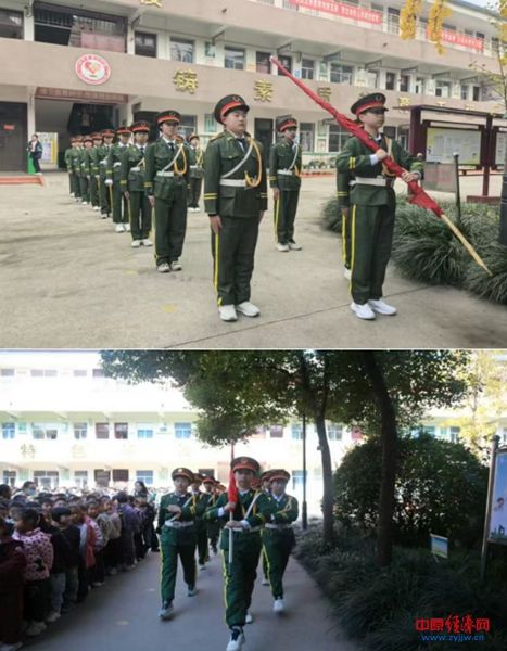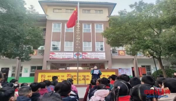 清晨,伴随着庄严的《义勇军进行曲》,五星红旗冉冉升起,全体师生肃立注目,向国旗行注目礼,嘹亮的歌声中饱含着对祖国的热爱与对先烈的崇敬。