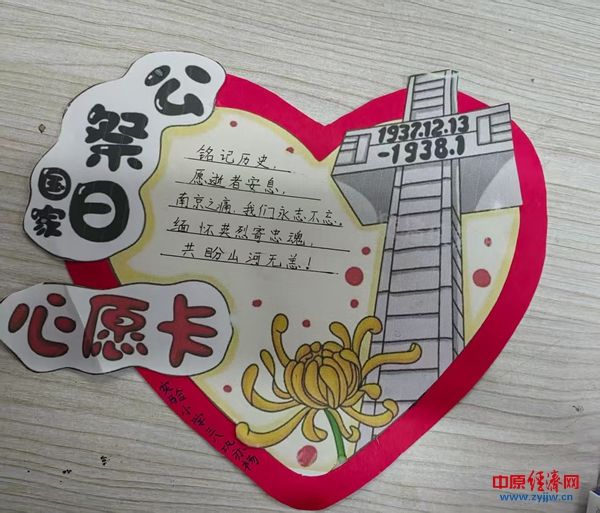 除主题班会外,学校还发起“和平心愿卡”制作活动。孩子们发挥创意,用彩笔勾勒出和平鸽、五星红旗、南京大屠杀遇难同胞纪念馆等图案,在卡片上写下对历史的铭记、对和平的期盼:“愿世界不再有战争的硝烟,只留和平鸽翱翔”“铭记历史,吾辈自强”“缅怀英烈寄忠魂,共护山河无恙”……一张张造型别致、饱含真情的心愿卡,既是对历史的追思,更是少年儿童对和平的美好憧憬。