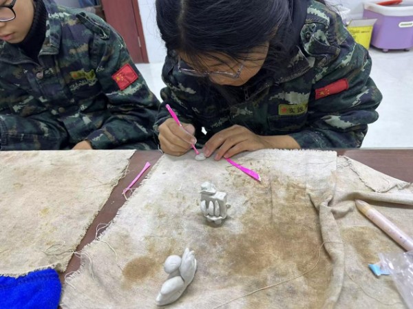 泥陶坊内,同学们或低头专注打磨细节,或相互交流创作心得,或主动向老师请教难题,专注的神情与欢快的笑语交织在一起,勾勒出一幅生动的非遗实践画卷。
