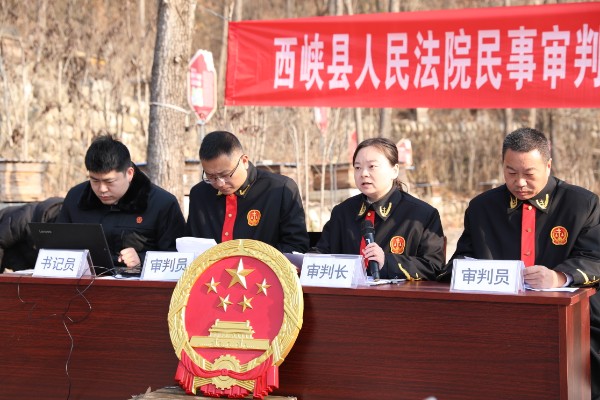 “现在开庭!”12月18日上午,清脆的法槌声划破了西峡县二郎坪镇中坪村的宁静。中华蜂养殖培训基地的蜂箱旁,几张长桌整齐排开,“西峡县人民法院民事审判巡回法庭”的红色横幅在苍劲的山林间显得格外醒目。南阳中院微直播团队的镜头对准审判席,村民们搬着小板凳围坐四周,有的踮着脚尖张望,有的低声议论,一场平息“蜂波”的“家门口庭审”,就这样在山林间拉开序幕。