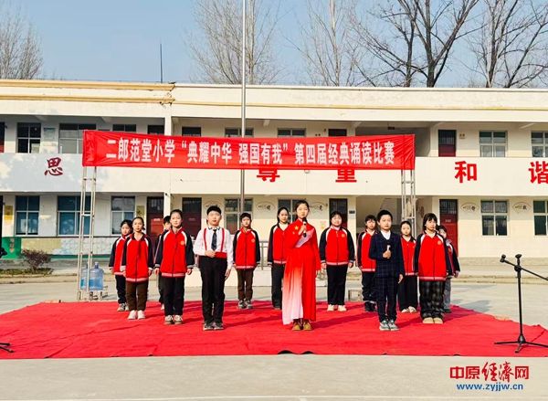 中原经济网驻马店讯(记者 杨晓 全媒体记者 冯占华 武萌萌)为创建书香校园,传承中华优秀传统文化,厚植少年儿童爱国情怀,12月19日下午,西平县二郎范堂小学举行“典耀中华 强国有我”经典诵读比赛。全校师生齐聚一堂,在琅琅书声中品味经典魅力,抒发强国之志。