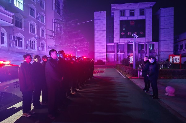 清晨6点半,夜幕未褪,罗山县人民法院大楼前已是警灯闪烁,30余名执行干警集结完毕,整装待发。院党组成员、副院长方涛作战前动员讲话,代表院党组向辛勤工作、坚守一线的全体干警致以诚挚感谢,希望大家在本次行动中规范执行、文明执行、安全执行,同时要打出气势、战出成效。党组成员、执行局局长王雷宣读了行动方案,并作具体工作部署。随后,执行干警们立即出发,按照行动方案直奔多个预定执行地点。