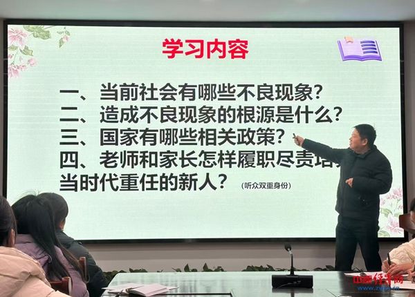 讲座现场,李遵义围绕家校融合的核心意义、协同育人的实践方法展开分享。他结合自身丰富的家庭教育指导经验,从心理健康、亲子沟通、教育理念协同等多个维度,剖析了当前家校共育中存在的问题,并给出了具体可行的解决策略。他强调,家庭和学校是孩子成长的两大重要阵地,只有形成教育合力,才能更好地引导青少年树立正确的价值观,培育出能够担当时代重任的新人。