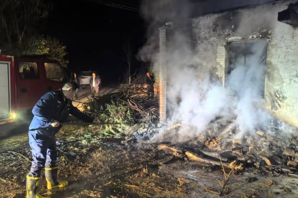 民房夜间起火 及时扑灭