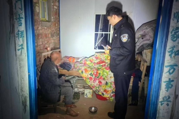 接警后,民辅警迅速赶到现场,发现一名老人坐在龚某家门口的路边,经了解获悉该老人喝醉了酒,错把龚某家当成自己家了,所以敲打龚某家的门。民警分析老人可能为附近的村民,于是联系附近几个村的村干部进行询问,经核查得知老人家住徐楼村方井组,考虑到安全问题,民辅警随即驱车将老人送回家中。