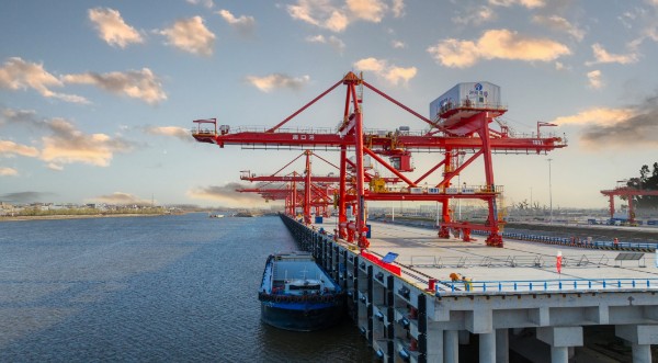金雷在致辞中指出,河南交投集团是全省内河航运高质量发展的核心主体,周口港是全省内河航运高质量发展的核心龙头,承载着中原通江达海、深度融入共建“一带一路”的重要使命。在项目谋划推进过程中,省委、省政府精准擘画,省直部门全程赋能,周口市委、市政府专班攻坚,沿线群众主动配合,河南交投集团牵头推进,中心作业区一期项目高质量如期建成投用,创下河南内河港口建设规模最大、工程标准最严、运营能力最强、自动化程度最高、信息化系统最优、服务能级最好的亮眼业绩。河南交投集团将以此次开港为契机,坚定践行“以港集产、以产兴港、港产城融合”发展理念,加快推进全省航道提级、港口提质,培育壮大临港产业集群,深化与长三角航运通道、东部沿海港口衔接联动,推动更多豫货走向全国、迈向世界。