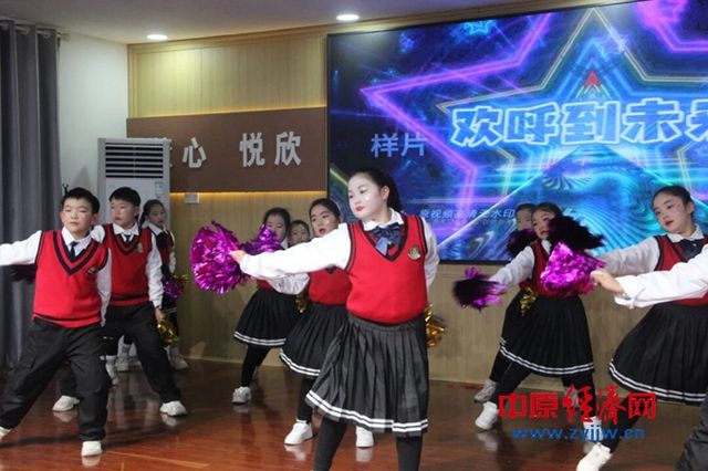 舞蹈、歌伴舞、儿童情景剧、戏曲、啦啦操等节目轮番上演。一年级小朋友带来的《中华美少年》《新年快乐》等舞蹈,动作稚嫩灵动,服装鲜亮夺目,瞬间点燃现场气氛;二年级的《炮竹声中一岁除》《欢乐中国年》将传统文化与舞台表演相融,传递出对祖国的真挚热爱,而《快乐星光啦啦操》则以动感节奏展现出孩子们的蓬勃朝气;三年级的《白雪公主》《古诗迎新春》创意十足,豫剧《花木兰》选段尽显传统文化传承魅力,手势舞《祖国有我 未来有我》则诠释了少年儿童的责任担当,活力四射的啦啦操《最好的舞台》将现场气氛推向高潮,赢得阵阵掌声。