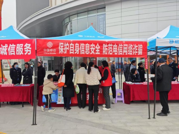 日前,信阳移动公司联合市反诈中心走进信阳市多个居民社区,开展“反诈宣传进社区,守护群众钱袋子”主题宣传活动,将反诈知识送到居民“家门口”。