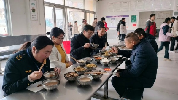 上午11时许,调研组一行深入食堂后厨,实地察看了操作间及就餐区域,详细了解了食堂食材的采购、制作、留样的具体操作流程,对餐具的消毒、食堂环境卫生、食品安全管理制度落实情况等进行了细致的检查。就餐时间,调研组与同学们一起排队,自费购买午餐。期间,调研组详细询问了同学们对食堂饭菜质量、口味、价格的满意度,倾听学生对校园食堂的建议。马骋强调,食堂要重点关注学生用餐习惯,提醒学生按需取餐、杜绝浪费,同时根据学生生长发育需求,科学搭配菜品,保证营养均衡,让学生吃得安全、吃得健康。