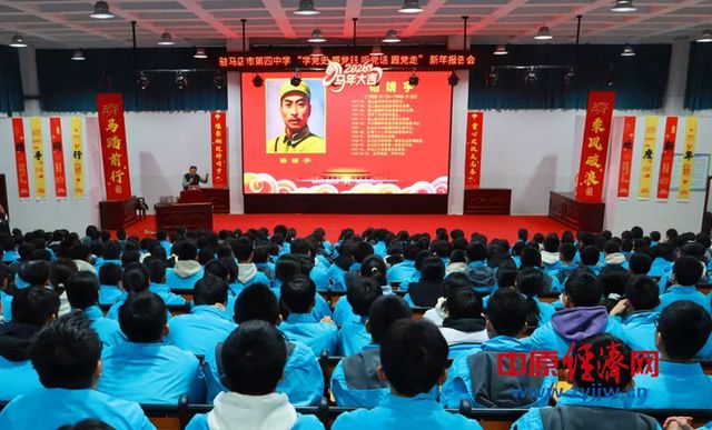 中原经济网驻马店讯 (记者 杨晓 全媒体记者 晨曦 通讯员 飘飘)2025年12月31日,在这辞旧迎新的特殊时刻,驻马店市第四中学报告厅内气氛庄严而热烈。一场专为八年级学生举办的“学党史、感党恩、听党话、跟党走”新年主题报告会,在雄壮的国歌声中拉开序幕。