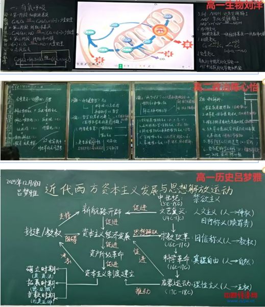 中原经济网驻马店讯(记者 杨晓 全媒体记者 冯占华 通讯员 陈梦园 赵会敏)一支粉笔,三尺讲台,方寸之间,尽显教育的智慧与艺术的温度。岁末将至,新年伊始。为以笔墨致敬育人初心,以匠心迎接美好未来,12月30日下午,西平高中在图书馆三楼报告厅隆重举办“笔墨迎元旦 板书展风采”板书设计大赛。本次比赛由教导处精心策划组织,各学科教研组教师热情参与,旨在通过板书设计这一既传统又富有生命力的教学环节,展现教师们对教材内容的深刻理解、对教学思路的清晰把握,以及独具匠心的审美创造与育人情怀。