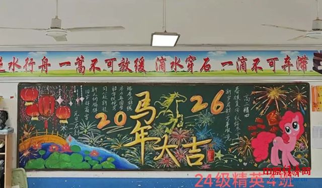 活动开展以来,各班级高度重视、精心筹备。同学们分工协作,从主题构思、版面设计,到图案绘制、文字誊写,每一个环节都凝聚着集体的智慧与汗水。黑板上,既有“辞旧迎新”的美好寄语,也有对新一年的无限期许;既有灵动俏皮的卡通插画,也有工整隽秀的书法文字;既有彰显学科特色的趣味元素,也有展现班级风貌的创意巧思。一笔一画勾勒梦想,一字一句书写希望,每一块黑板报都成为班级文化的生动缩影。