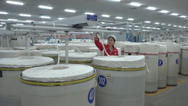银鑫棉业公司工人刘宣华说:“现在我们的工作任务比较重,订单也比较充足,我们正在全力以赴赶制订单。”