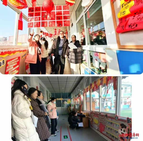 老师们对新年环创细致观摩、认真记录。她们不仅看创意与美感,更关注环境与幼儿的互动:那些可触到的墙面作品,那些留有孩子探索痕迹的儿童作品,那些由师幼共同完成的主题布置……每一处细节,都诉说着“儿童本位”的育人理念。