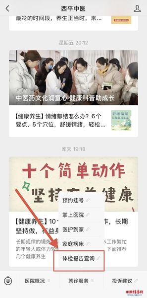 操作便捷:关注“西平县中医”官方公众号→点击“就诊服务——体检报告查询”→输入身份证号与手机号验证→即刻获取报告,全程仅需3分钟!
