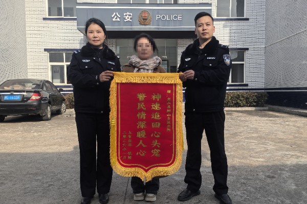 1月14日10时许,斛山乡居民上官女士专程来到光山县公安局斛山派出所,将一面“神速追回心头宠 警民情深暖人心”的鲜红锦旗送到民警手中,以此表达对民辅警的感谢之情。