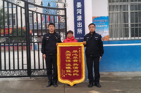 第二天一大早,熊女士便兴匆匆来到晏河派出所,送来了“尽心尽责 热情为民 失而复得 温暖我心”的锦旗。