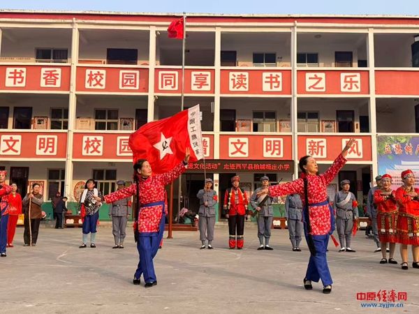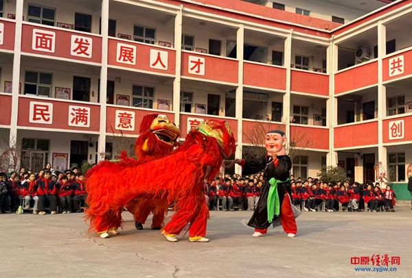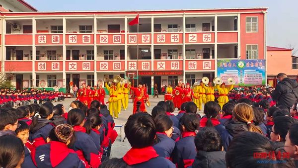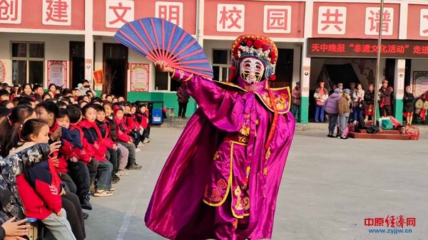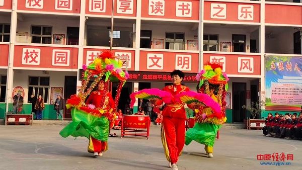 中原经济网驻马店讯(记者 杨晓 全媒体记者 冯占华 通讯员 黄霞)1月16日下午,西平县柏城杨庄小学操场上鼓乐喧天、掌声雷动,天中晚报“非遗进校园”系列活动在此温情启幕。西平大铜器、旱船、舞狮、变脸、红色情景剧等节目集中展演,为全校师生呈现了一场沉浸式的传统文化与红色精神交融的盛宴。